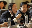 Chinese Vice Premier Wang Qishan (L) speaks during a meeting of the Sino-US Strategic Economic Dialogue Tuesday in Maryland.