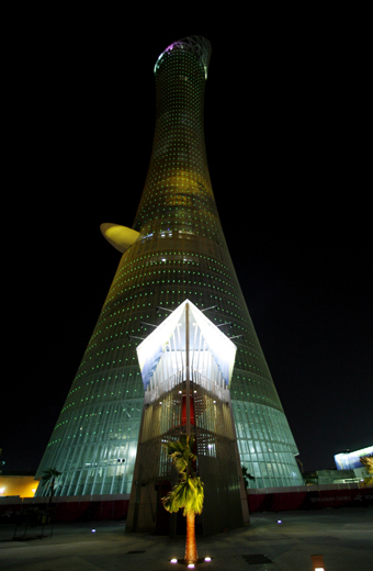 A general view shows the Tower of Asian Games Flame as preparations continue for the 15th Asian Games 2006 in Doha November 23, 2006.[Reuters]