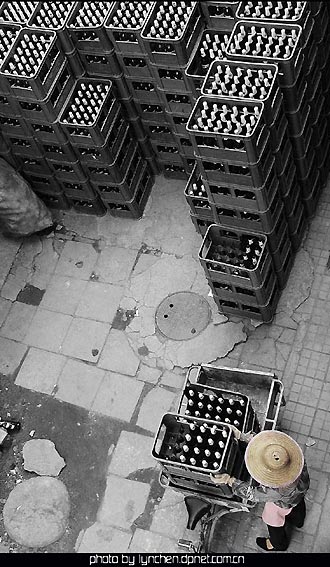 A woman moves a box of beers on her three-wheeler in Beijing - Xuanran Yixiao