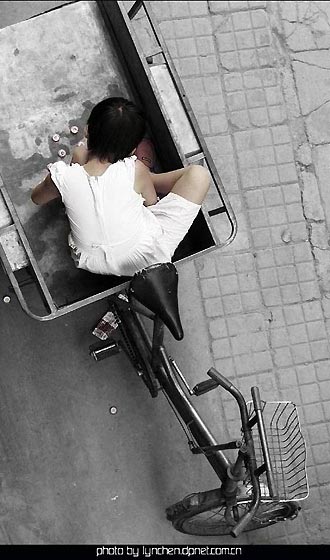 Her daughter plays on another three-wheeler nearby - Xuanran Yixiao
