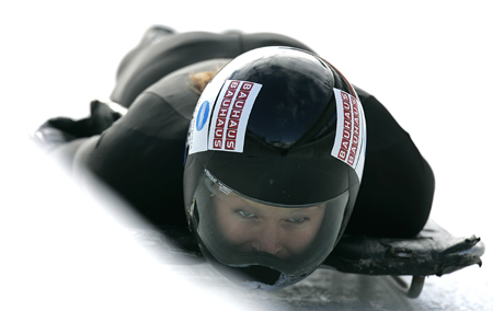 Australia's Michelle Steele trains for the upcoming skeleton world cup tour at the Olympic track in Cesana Pariol, northern Italy, February 7, 2007. [Reuters]