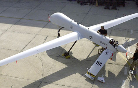 Security staff sit in the goal for security protection as the new Red Lantern Stadium welcomes its first football game in Taiyuan, North China's Shanxi province, Oct 8, 2011. [Photo/CFP]