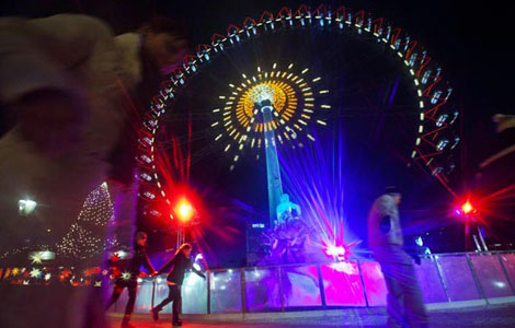 People play on a beach in Xiamen, Fujian province, on Nov 16, 2011. [Photo/chinadaily.com.cn] |