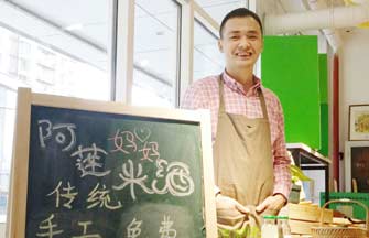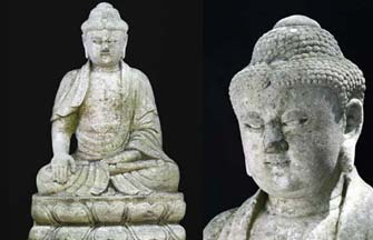 A visitor enjoys a sculpture at the National Art Museum of China in Beijing, January 16, 2014. [Photo by Lei Kesi/Asianewsphoto]