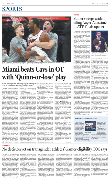 Miami beats Cavs in OT with 'Quinn-or-lose' play