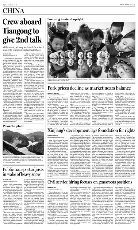 Crew aboard Tiangong to give 2nd talk