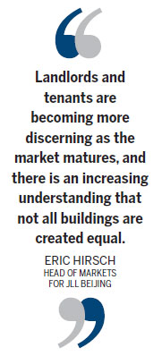 "Landlords and tenants are becoming more discerning as the market matures, and there is an increasing understanding that not all buildings are created equal," says Eric Hirsch, head of markets for JLL Beijing.