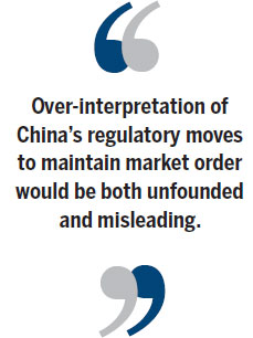 Over-interpretation of China's regulatory moves to maintain market order would be both unfounded and misleading.