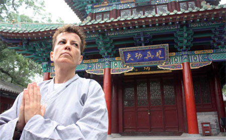| Greek business consultant Demina Masoula practices kung fu at Shaolin Temple. Joseph Catanzaro / China Daily |
