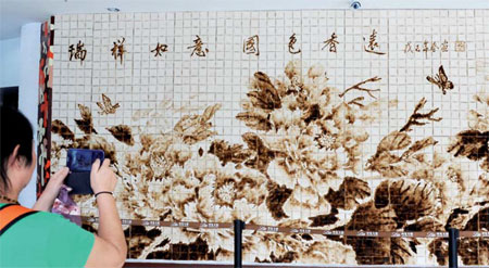 | Baked, sliced and painted: A Chinese painting on 2,000 slices of bread at the International Horticultural Exposition in Qingdao, Shandong province, on Aug 18. Provided to China Daily |