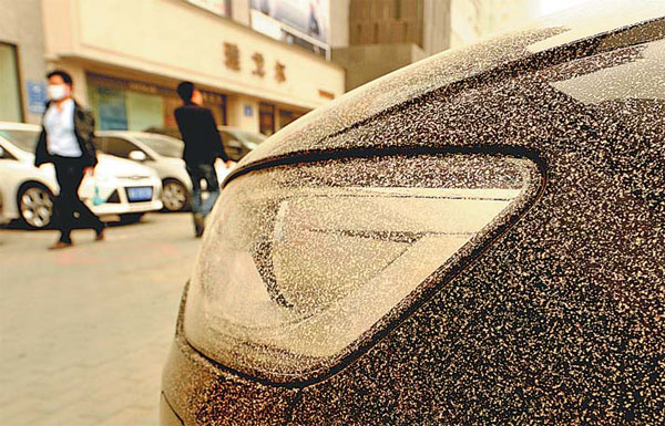 | Dusty day: Pedestrians and vehicles brave sandstorms in Wujiaqu, Northwest China's Xinjiang Uygur autonomous region, on April 27. Zhang Wande / For China Daily |