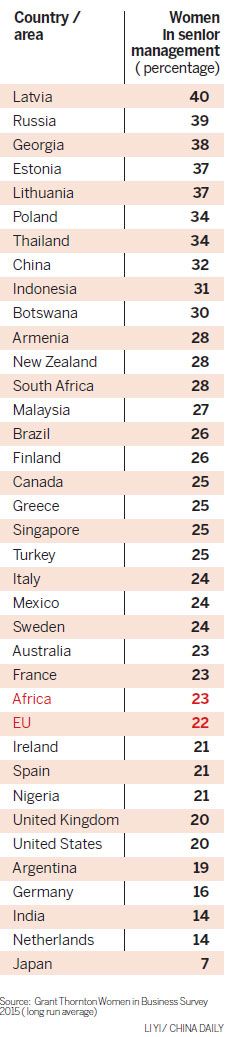 In the Grant Thornton research, however, China does not fare so well in terms of the proportion of women in senior management occupying the role of chief executive officer.