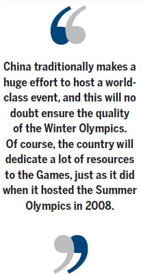 China traditionally makes a huge effort to host a world-class event, and this will no doubt ensure the quality of the Winter Olympics. Of course, the country will dedicate a lot of resources to the Games, just as it did when it hosted the Summer Olympics in 2008.