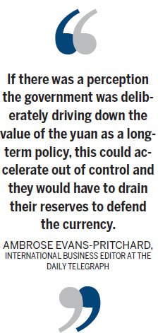 "If there was a perception the government was deliberately driving down the value of the yuan as a long-term policy, this could accelerate out of control and they would have to drain their reserves to defend the currency," he says.