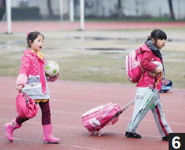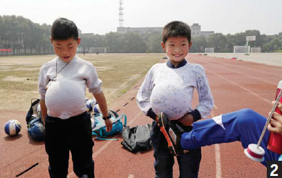 | 1. Students practice dribbling during a break at Xizhang Primary School. Photos by Ni Lixiang / For China Daily |