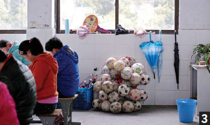 "Wenhao is talented in playing soccer, but he's bad in reading. Our school allows the students to touch the ball only when they finish their homework in basic sciences and humanities," says Dai Chaojie, a new soccer trainer at the Xizhang school. Dai was a professional player with the Shuntian Soccer Club and was encouraged to get involved in the teaching team at the primary school along with two other young players.