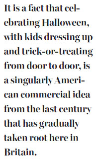 They may be blameless for promoting the event, but it is a fact that celebrating Halloween, with kids dressing up and trick-or-treating from door to door, is a singularly American commercial idea from the last century that has gradually taken root here in Britain. It is now a massive retail operation.