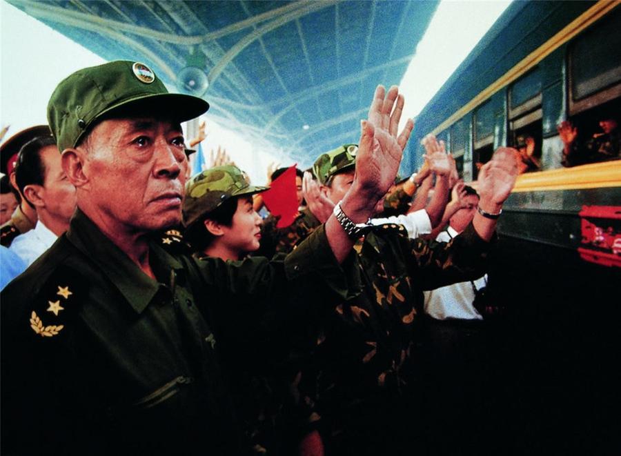 General says goodbye to soldiers. Photo was taken by Yan Ping in 1998. [Photo provided by cpanet.org.cn] |