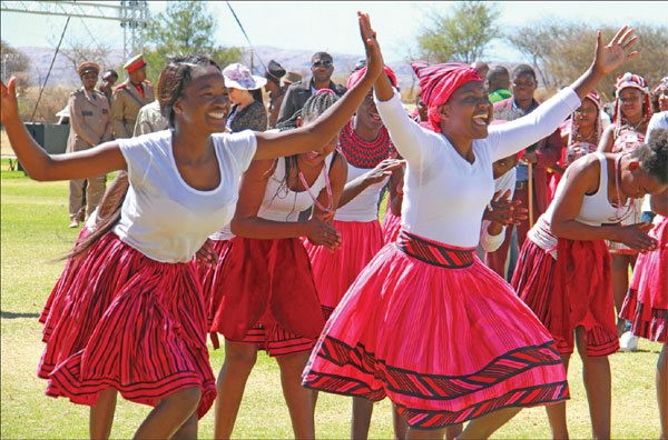 | FESTIVAL FUN: Owambo girls perform during the University of Namibia Cultural Festival in Windhoek, Namibia, on Aug 17. Wu Changwei / Xinhua |