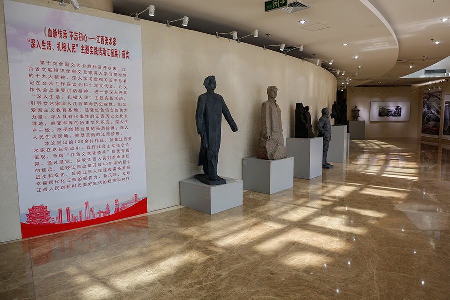 An exhibition featuring paintings and sculptures by artists from Jiangxi was held at the gallery of the China Federation of Literature and Art Circle over the weekend. [Photo provided to China Daily]
