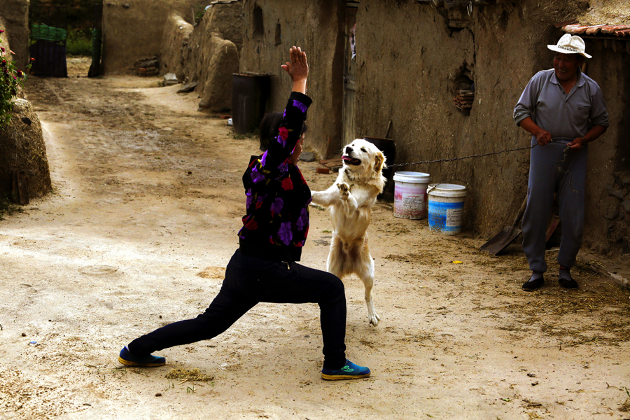 A resident practices yoga at home in the courtyard. [Photo by Zhao Zhannan/for China Daily]