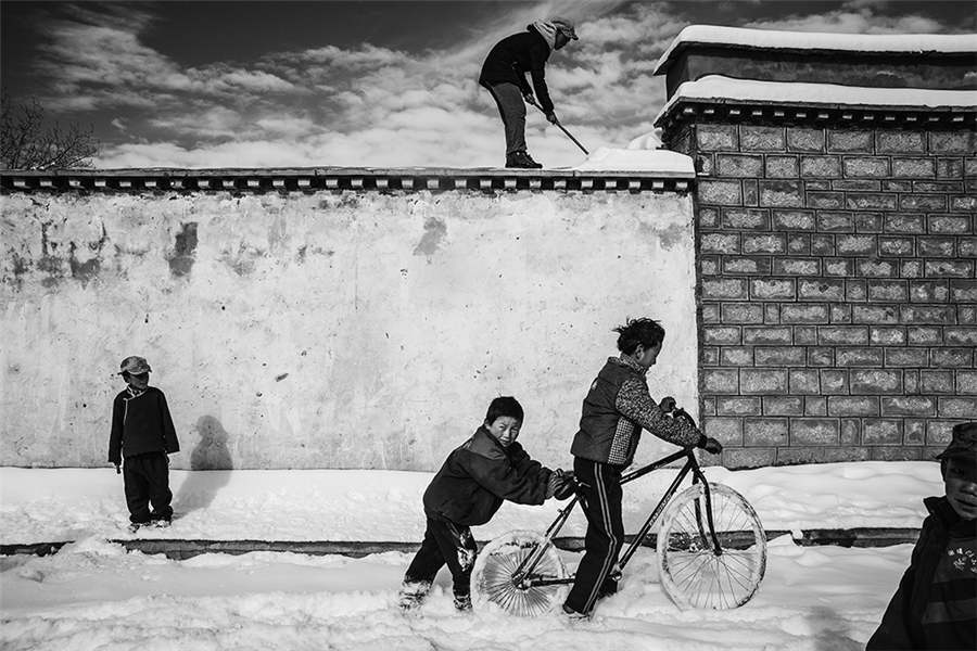 Children play in the snow. [Photo by Wang Weitao/cpanet.org.cn]