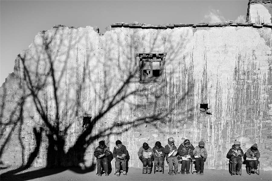 Children bath in the sun and absorb knowledge under the shadow of a tree. [Photo by Wang Weitao/cpanet.org.cn]