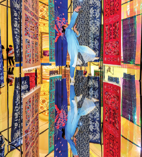 Among the cloth was blue calico designed and created by Wu Yuanxin and his Blue Calico Museum. The 60-year-old from Nantong of Jiangsu province has spent more than half his life collecting and researching traditional Chinese blue calico, which is recognized as one of China's intangible culture heritage.