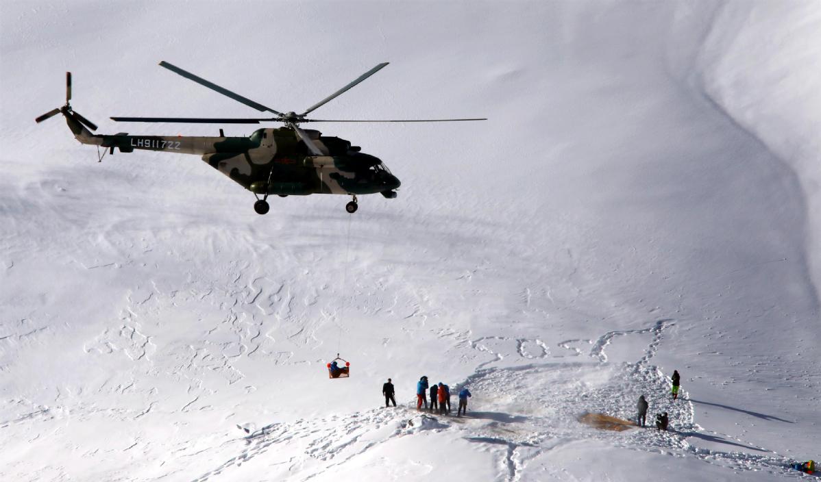 Helicopters rescue 10 following avalanche on Xinjiang mountain