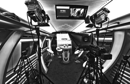 It has eight cars, including business, first-class and second-class compartments. To serve media needs, it has special working compartments with tables and international electric sockets, and there is also a high definition studio for live broadcasts of interviews with athletes and officials, supported by 5G technology. The train is the first of its kind in the world to offer HD signal transmissions while traveling at speeds of up to 350 kilometers per hour.