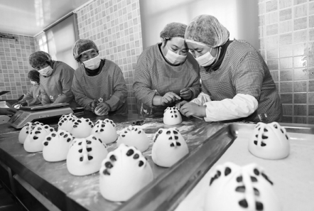 Before making bobo at the cooperative, workers are trained to make a standardized product, down to details such as how many jujubes to use when decorating them.