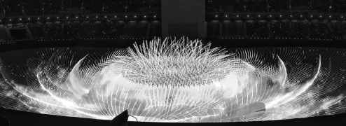 "This kind of matrix performance used to be presented with banners and flags, but this time we used a new material whose flexibility and intensity can present an effect of rising and falling, such as wind blowing grass low and dandelions whirling in the wind," said Gao Zhiyi, a director of the program, who is deputy head of the music school at Shandong Normal University.