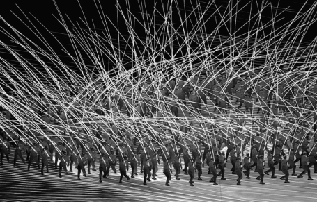 "It's like using pens to portray the effects made by brushes," he said. "The program, lasting around three minutes, had 200,800 moves."