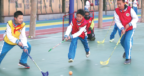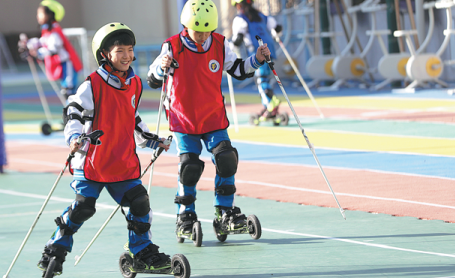 Schoolchildren zoomed around on roller skates, passing the puck on an artificial ice rink and practicing cross-country skiing skills on roller skis on a brisk afternoon at the Yangfangdian Central Primary School in Beijing's Haidian district.