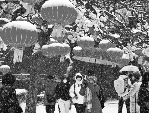 Beijing West Railway Station said that by 8:30 pm, snow had led to delays affecting about 20 high-speed trains heading to or from the station.