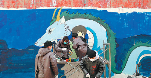 They were the work of 20 college students who had returned to their hometown in Shangqiu during the winter vacation to give it a fresh look and help improve the surroundings.
