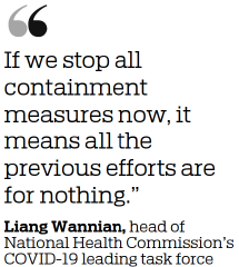 "If we stop all containment measures now, it means all the previous efforts are for nothing," Liang said.