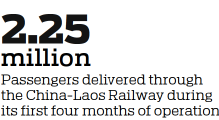 An average of 47 passenger trains run the section in China on a daily basis, carrying a total of 2 million passengers over the last four months. In Laos, two pairs of trains each day have transported some 224,000 passengers so far.