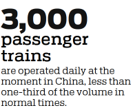 China is currently operating about 3,000 passenger trains a day, less than one-third of the volume in normal times, the group said.