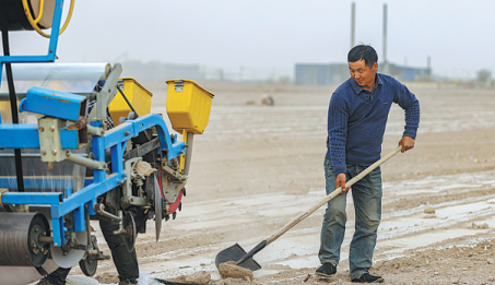 It used to take six days to sow about 33 hectares of land, he said, "but now, with the satellite navigation system to assist in driving, we can finish sowing and laying mulching film and drip irrigation in just three days".