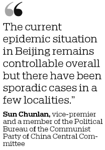 "The current epidemic situation in Beijing remains controllable overall but there have been sporadic cases in a few localities," said Sun, who is also a member of the Political Bureau of the Communist Party of China Central Committee.