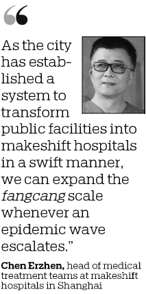 "This fangcang played a critical role in providing quarantine and medical observation for infections as it received nearly one-third of the more than 600,000 COVID-19 infections during the local wave," said Chen, who is also vice-president of Shanghai Ruijin Hospital, in an exclusive interview with China Daily.