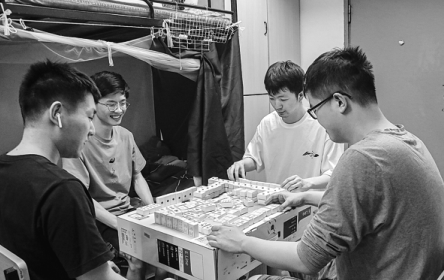 Having been quarantined in their dormitory for more than a month, Cao Lingfeng, Yang Yuguo, Yao Keyu and Li Hongtao were so bored that they decided to make mahjong tiles out of the inner packaging of rapid antigen test kits.