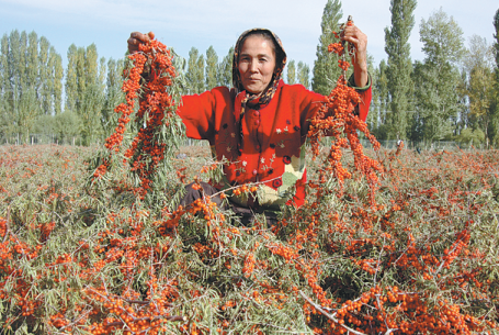 Sea buckthorn plantations are giving Wushi, a county of deserts and mountains in the Xinjiang Uygur autonomous region, a new lease on life.