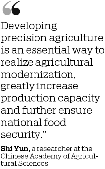 Shi Yun, a researcher at the Chinese Academy of Agricultural Sciences' Institute of Agricultural Resources and Regional Planning, said China will realize fully mechanized, automated and digital agriculture through developing smart and precision agricultural technologies.