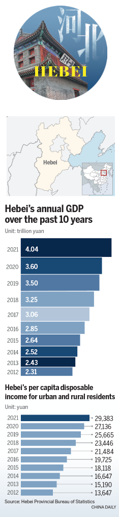In terms of economic growth, the added value of all industries has increased by an average of 5.6 percent annually from 2012 to last year. Last year, the total industrial added value reached 1.4 trillion yuan, 10th in the country, according to the Industry and Information Technology Department of Hebei.