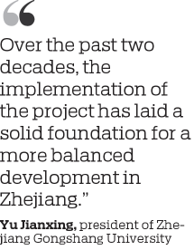 "Over the past two decades, the implementation of the project has laid a solid foundation for a more balanced development in Zhejiang," Yu said. "More significantly, it will serve as a model for regional coordination in other provinces."