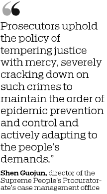 "When handling epidemic-related cases, prosecutors uphold the policy of tempering justice with mercy, severely cracking down on such crimes to maintain the order of epidemic prevention and control and actively adapting to the people's demands," he said.