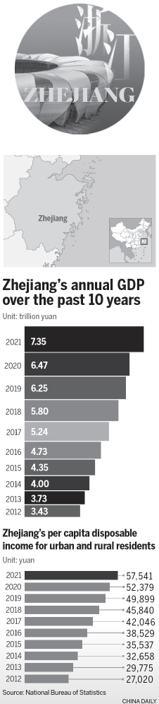Zhejiang's economy has maintained strong high-quality development over the past five years, particularly its digital economy, and the province's inhabitants are reaping its rewards in terms of an improved environment and rising disposable incomes, especially in rural areas.