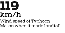 Ma-on made landfall with gales of around 119 kilometers per hour. After its landfall, the typhoon moved northwest at a speed of about 25 km/h, passing through the city of Maoming in Guangdong. The typhoon entered the Guangxi Zhuang autonomous region on Thursday afternoon, with winds decreasing.